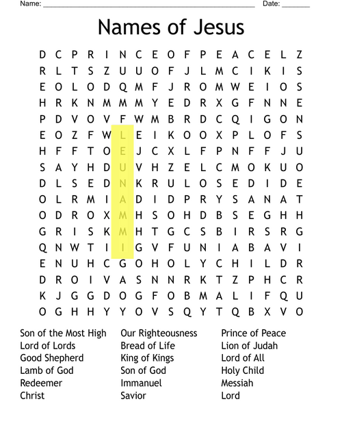 For fun and for the family ... see how well you can highlight Jesus with the online word search. Time yourself, see who can find all the names of Jesus. For extra credit, find bible verse that mentions that name of Jesus and talk about its meaning.